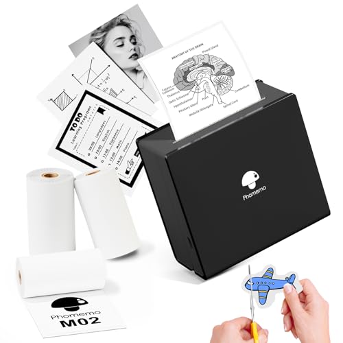 Phomemo M02 Mini-skrivare med 3 etikettrullar, fickskrivare för smartphone, Bluetooth-klistermärke, skrivare, termisk skrivare för studier, anteckningar, bilder, foton, dagböcker