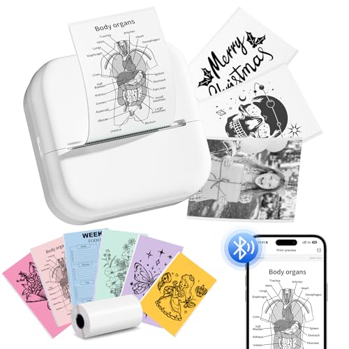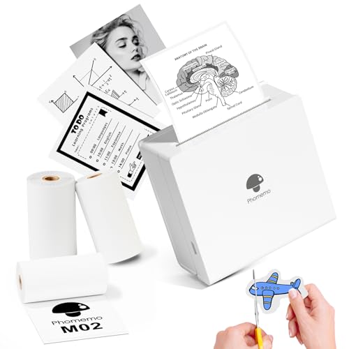 Memoking Miniskrivare - M02L Bluetooth Bärbara termiska skrivare, Mini Termisk Skrivare med 1 Pappersrulle, Bärbar Mini Skrivare för Foton, Lärande, Anteckningar, Dagböcker, Kul, DIY, Memos (Vit)