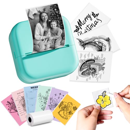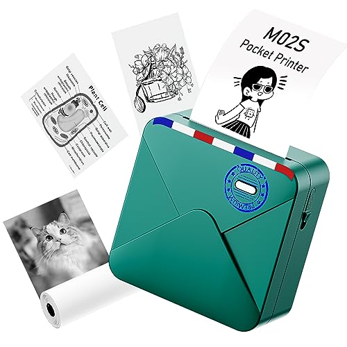 Memoking Miniskrivare - M02L Bluetooth Bärbara termiska skrivare, Mini Termisk Skrivare med 1 Pappersrulle, Bärbar Mini Skrivare för Foton, Lärande, Anteckningar, Dagböcker, Kul, DIY, Memos (Grön)
