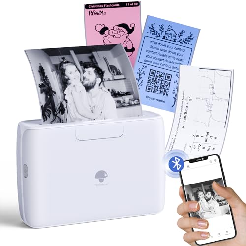 Memoking T02 Mini skrivare – Bluetooth Inkless Photo Printer, liten termisk fickdekal-skrivare, bärbar mobiltelefon bildskrivare, för barns födelsedag, barn, vit
