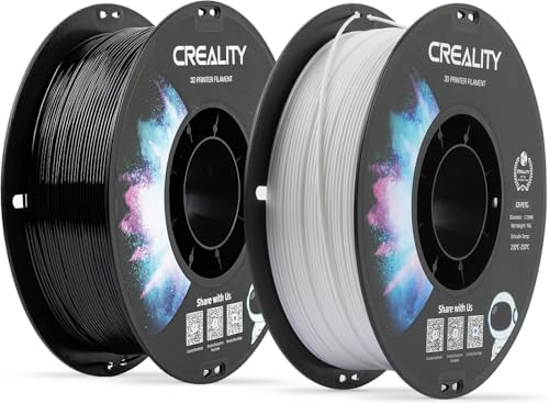 Creality CR-PETG PLA 3D-skrivarfilament 1,75 mm, utmärkt hårdhet, hög noggrannhet, luktfri, giftfri, fuktsäker, för 3D-skrivare (svart) x 1 kg vit x 1 kg