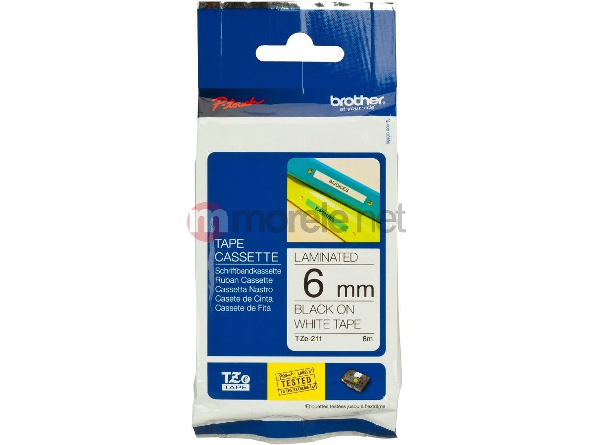 Brother Tz211 - Svart På Vitt - Rulle (0,6 Cm X 8 M) 1 Stk Band För Skrivare - För P-Touch Pt-1010, 1080, 1090, 1230, 1290, 18, 2100, 2110, 2430, 3600, 7100, 9800, Pt-Gl-200