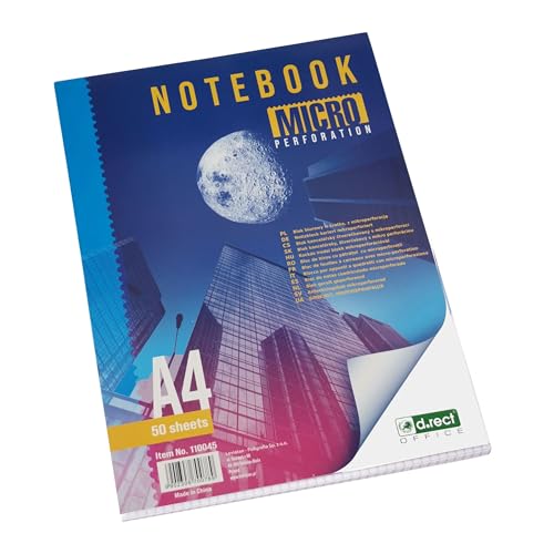 D.RECT 110045 brevblock med mikroperforering | rutat skrivblock | 70 g/m² | A4 | 50 ark