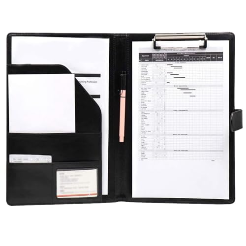 Klämbräda A4-mapp läder, klämbrädemapp A4 anteckningsbok skrivblock, A4 skrivmapp klämbräda mapp, dokumentorganisationshjälp med innerfack, för skola, hem, kontor användning (svart)