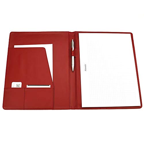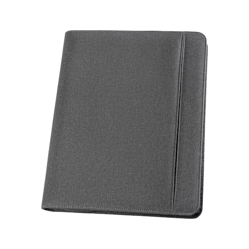 Genie München A4 skrivmapp – extra tunn och hållbar, nylon och läderutseende, inklusive skrivblock, surfplatta/smartphone-hållare och fack; pennhållare, sidofack, visitkortsfack