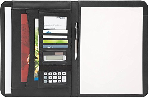 Genie Elegant A4-skrivmapp Wiesbaden (extra tunn och hållbar; strukturerad nylon och läderutseende; inkl. skrivblock; pennhållare; sidofack; visitkortfack) svart