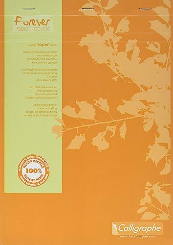 Clairefontaine 17254C Forever calligrafi skrivblock (DIN A4, 21 x 29,7 cm, häftad på huvudsidan, rutig, 100 ark, perfekt för skolan) 1 styck