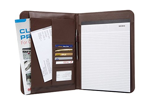 Samsill vintage portfölj med dragkedja i konstläder, bokstil med hårt omslag, affärs- och intervjukompatibel padfolio-organisatör, 21,5 x 28 cm skrivblock, mörkbrun.