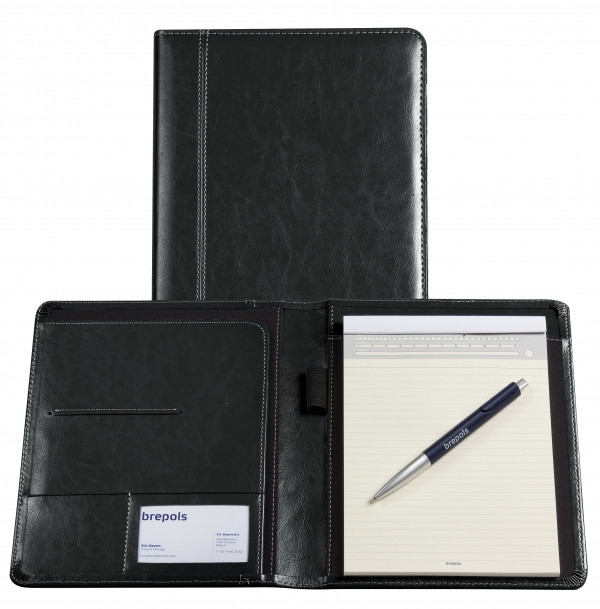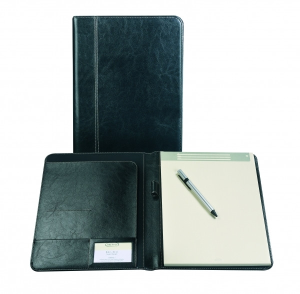 Wedo 586401 skrivmapp Accento DIN A4 av konstläder, ytterfack, flera innerfack, elastiska band inklusive skrivblock, svart