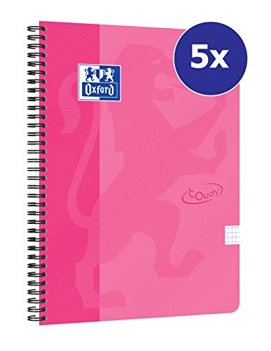 Oxford 400118802 Collegeblock Touch rosa A4 5-pack rutig 140 sidor skrivblock anteckningsblock skolblock