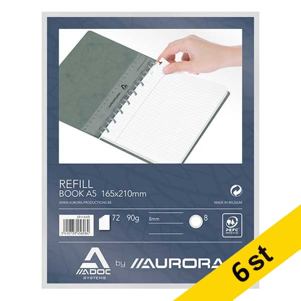 Skrivbok påfyllning för A5 | linjerad | 72 ark | Aurora Adoc | 6st