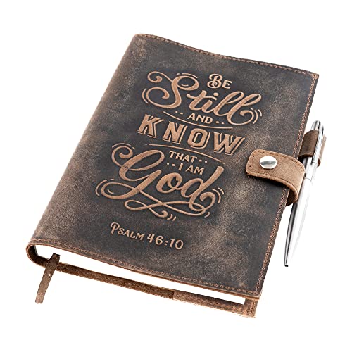 Påfyllningsbar Anteckningsbok Linjerad Resedagbok - Journal med Psalm 46v10 Präglad Bibelvers - Vintage Handgjord Skrivbok i Läder med 320 Sidor Fräst A5 Papper och Lyxpenna från Moonster