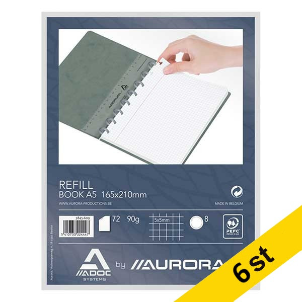 Skrivbok påfyllning för A5 | rutat | 72 ark | Aurora Adoc | 6st