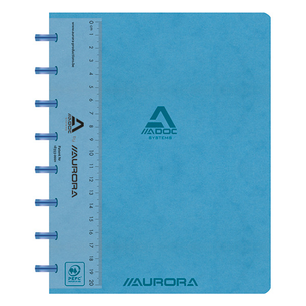 Skrivbok A5 rutat med linjal | blå | 72 ark | Aurora Adoc