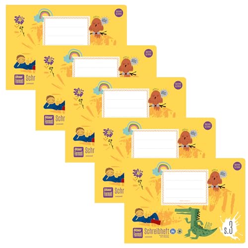 Ursus Forati skrivbok S.3 A5 liggande 20 ark linjerade, 5 stycken, byggande linjatur för nybörjare: inuti, tillverkad av 100% återvunnet papper