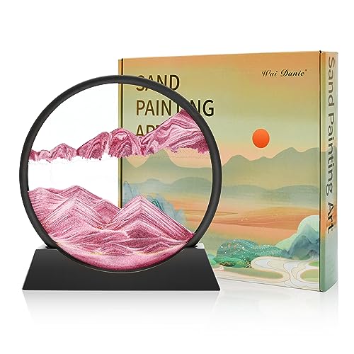 Wai Danie Sandbilder vid vridning, 3D-sandkonst i djuphav, flödande sandmålning, sandbild, presenter, timglas, dekoration, estetisk, för kontor, vardagsrum, skrivbord, vuxna, barn (rosa, 30 cm)