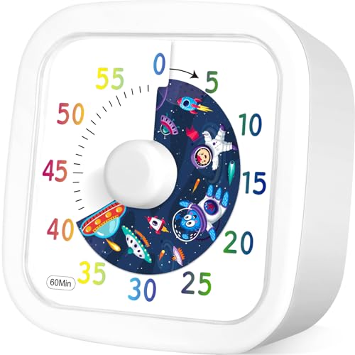 HYOJCWU Visuell timer för barn, 60 minuters nedräkningstimer för klassrum kontor kök, skrivbord timers barn tidsförvaltningsverktyg med tyst drift, stjärnhimmel