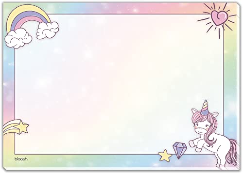 blaash® XXL enhörning skrivbordsunderlägg papper DIN A2 för barn | 25 ark block med plats för målning, skrivning eller doodling | underlägg skrivbord flickor/skrivbordsunderlägg barn dekoration