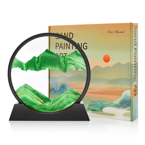 Wai Danie Sandbilder vid vridning, 3D-sandkonst i djuphav, flödande sandmålning, sandbild, presenter, timglas, dekoration, estetisk, för kontor, vardagsrum, skrivbord, vuxna, barn (grön, 30 cm)