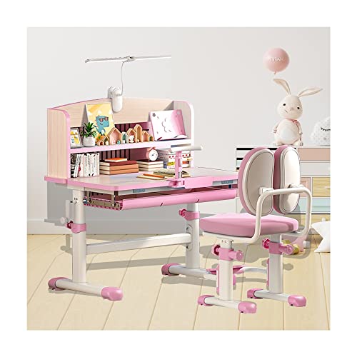 Kripyery Set för Barn Skrivbord och Stol - Justerbar Höjd för Flickor Pojkar Skola Läxor Studiebord - Ergonomiskt Med Stort Skrivbord, Bokhylla och Låda - UK Leverans (Sötrosa)