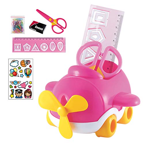 Kripyery Set med bordsstolar, multifunktionell separering utvidgad barn skrivbord tecknat mönster ergonomisk läsning med låda bokhylla för sovrumsmöbler skolpojkar flickor hem studierum verktyg rosa