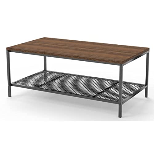 Novilla Soffbord för vardagsrum, 2 nivåer soffbord med öppen förvaringshylla, modern industriell stil metallram, vuxen bordsben, vattentät skrivbord, valnöt, 110 x 60 x 45 cm