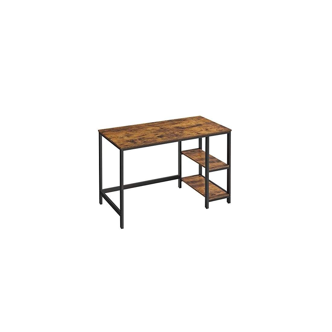 Datorbord, Skrivbord med 2 hyllor på vänster eller höger sida, Arbetsbord för kontorsrum, Stålram, Industriell, Rustik Brun och