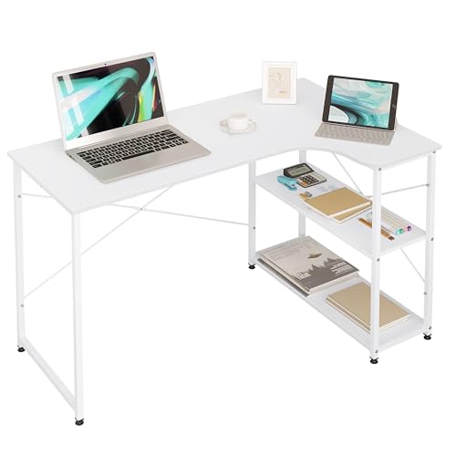 WOLTU Hörnskrivbord 120 x 75 cm, L-format skrivbord med 2 hyllor, kontorsbord datorbord PC-bord, hörnbord stort för kontor hemmakontor gaming, industriell design, vitt