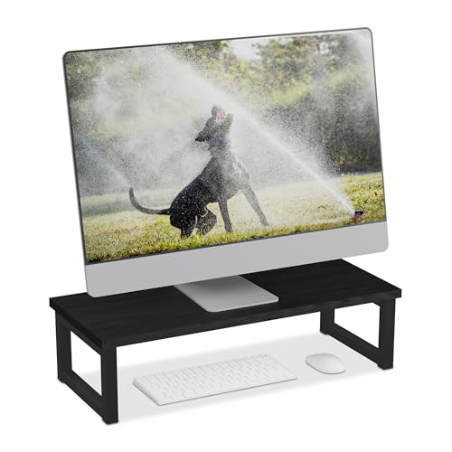 Relaxdays monitorstativ, skärmhöjd för skrivbord, H x B x D: 15 x 40 x 23 cm, industriell design, natur/svart
