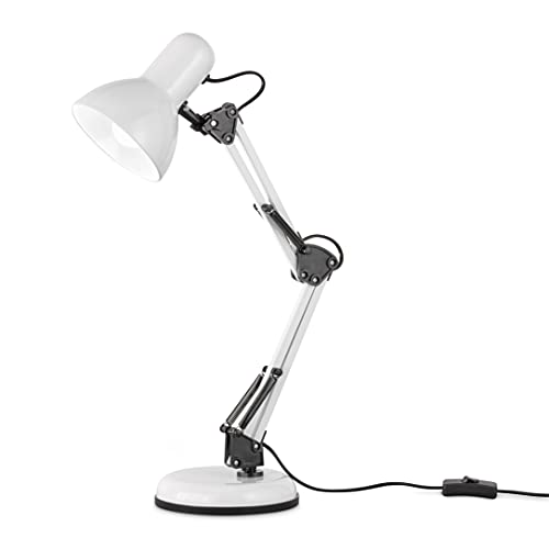 EGLO Bord Colinezza, 1 glödlampa skrivbord flexibel justerbar, bord industriell, kontor i metall i vitt och svart, lampa med strömbrytare, E14-sockel