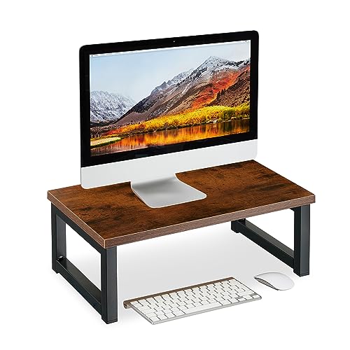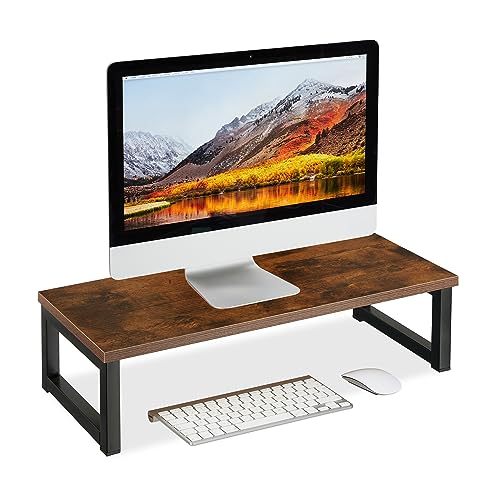 Relaxdays monitorstativ, skärmhöjd för skrivbord, H x B x D: 15 x 40 x 23 cm, industriell design, brun/svart, stål