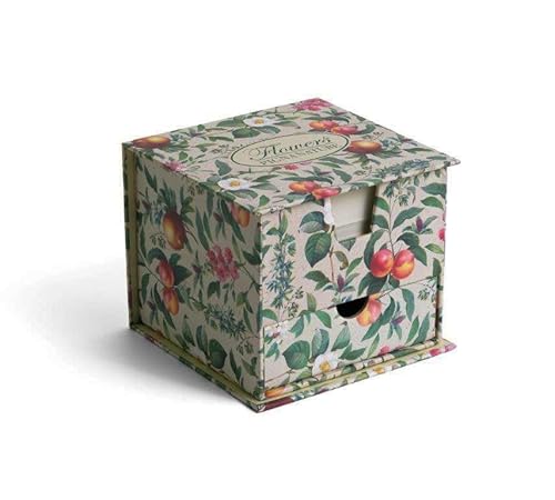 Pigna, Skrivbordsorganisatör med låda, Memo Nature Flowers, elegant blommig design, perfekt för skrivbord, kompakt organisatör, beige bakgrund, 1-pack