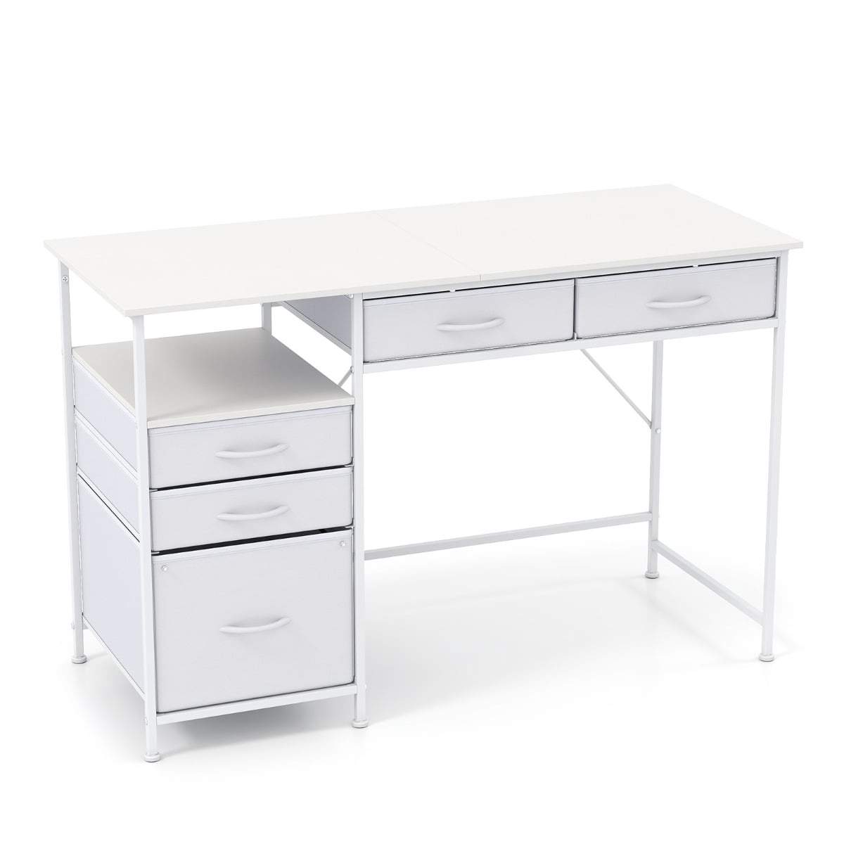 Vitt skrivbord med 5 tyglådor – Kompakt hemmakontorslösning
