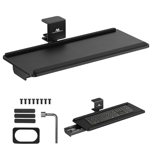 Maclean MC‑108 B tangentbordshållare under skrivbord | justerbar lutning och svängning + handledsstöd och låda | klämmontering utan borrning | kompakt ergonomisk svart scen