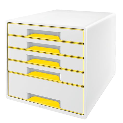 Leitz WOW Skrivbordsbyrå, 5 lådor, A4, inkl. markeringspenna och avdelare, vit/gul, 52142016