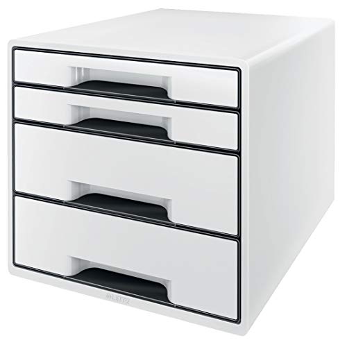Leitz WOW Skrivbordsbyrå, 4 lådor, A4, inkl. markeringspenna och avdelare, vit/svart, 52521001