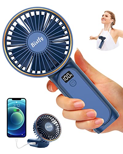Jsdoin Handhållen bärbar fläkt, USB-uppladdningsbar, med 5 hastigheter, batteridriven minifläkt, vikbar skrivbordsfläkt med LED-display för hemmakontor, sovrum, utomhusresor (blå)
