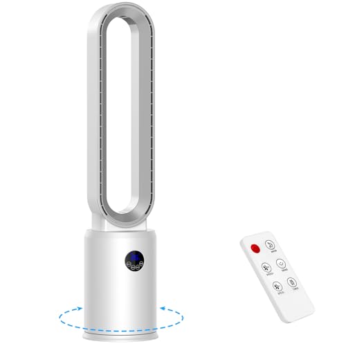 YAZEKY Bladlös tornfläkt, tyst pelarfläkt med fjärrkontroll, 24 hastigheter, 60° oscillation, LED-display, 12 timmars timer, 97 cm, kraftfull skrivbordsfläkt