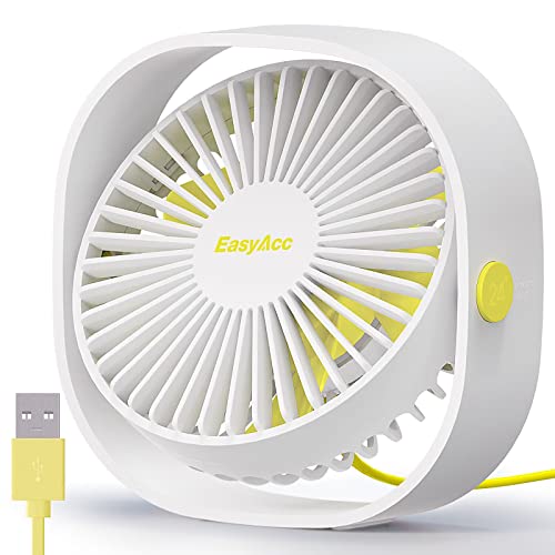 EasyAcc USB-skrivbordsfläkt – kraftfull 5,9 m/s mini skrivbordsfläkt med flera hastigheter, tyst kylning för hemmakontoret – vit