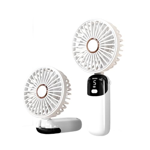 Funme 2025 Ny handhållen fläkt, bärbar handfläkt tyst stark vind [5 000 batteri/4 hastigheter/batteriindikator/lätt rengör] vikbar kraftfull kylande personlig skrivbordsfläkt utsökt för smink utomhus
