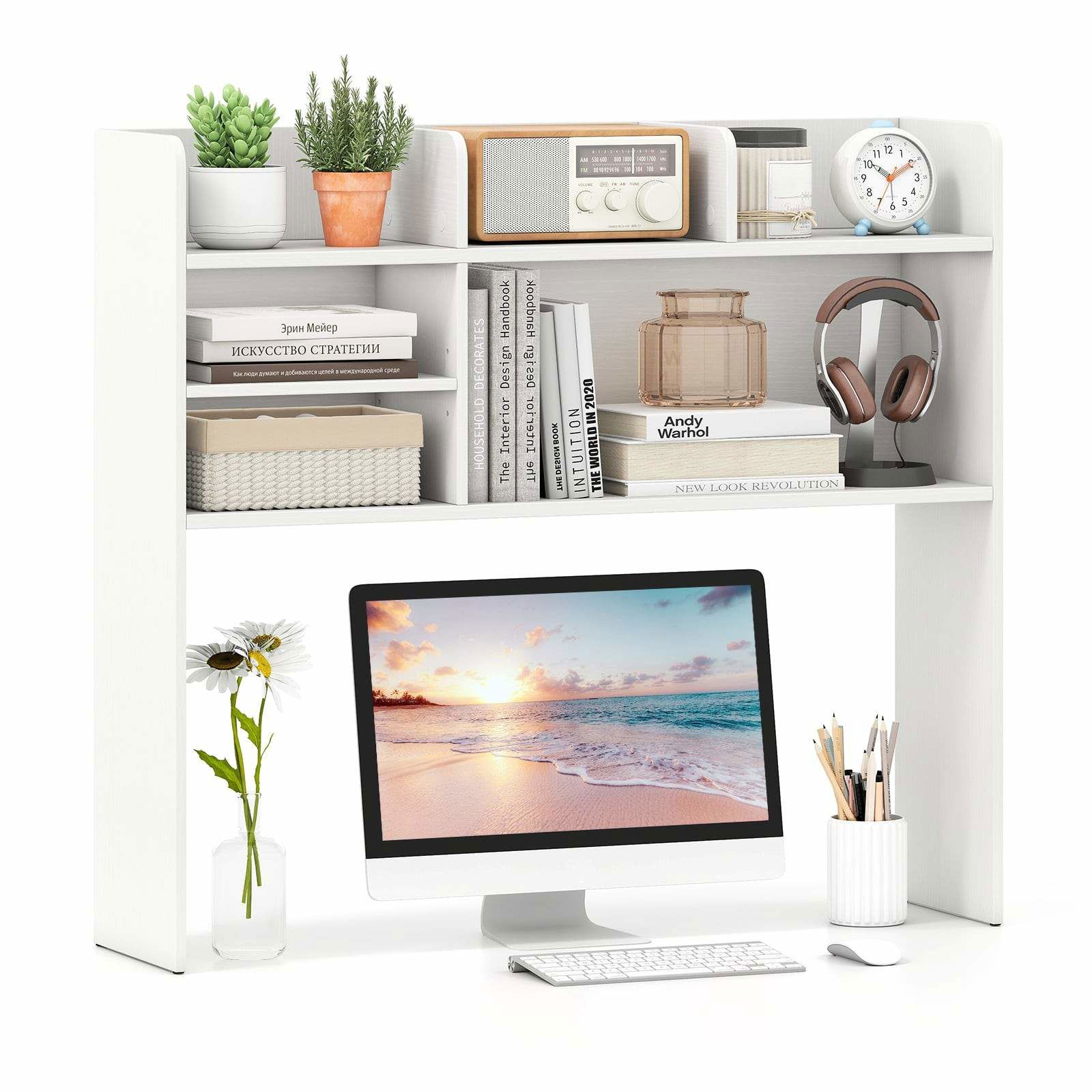 COSTWAY Skrivbordshylla, bordshylla med 4 hyllor och öppet fack, förvaringssystem, mångsidig bordsorganisatör för skrivbord, 94 x 25 x 74 cm (vit)