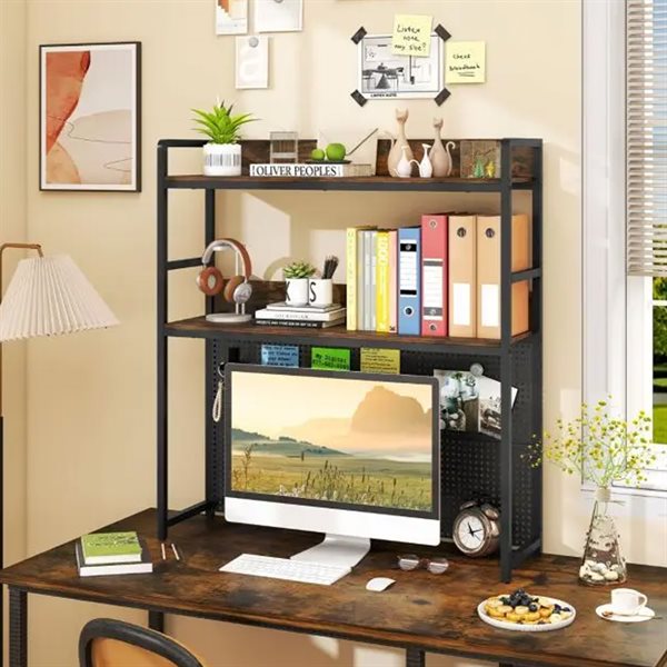 Rustik brun skrivbordshylla med 6 justerbara förvaringsställ