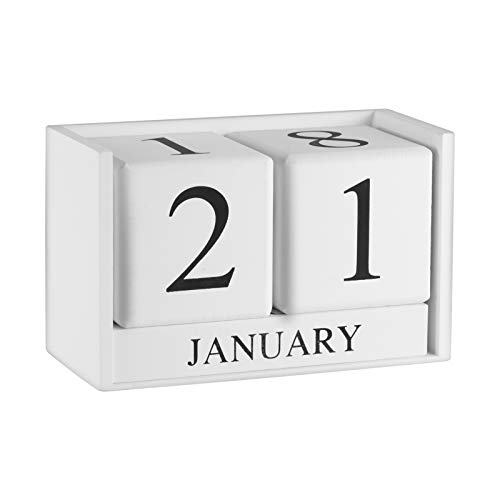 Obling vintage evig kalender skrivbordskalender trä manuell konvertering hållbar elegant tillbehör för hem eller kontor (15,5 x 7 x 9,8 cm, vit)