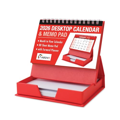 1ABOVE 2026 Skrivbordskalender – månad-till-vy avrivningskalender med anteckningsblock | Kompakt skrivbordsarrangör för hem, kontor eller skola