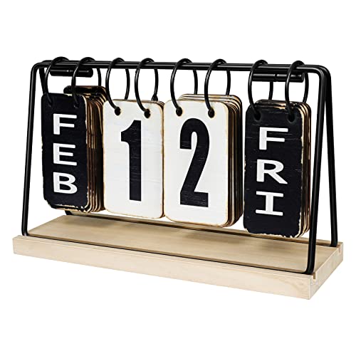 Dagligt kontor metall flip skrivbordskalender evigt trä vintage kalender för heminredning - månatlig veckoårsplanerare stående kök skrivbord dekor trä kalender