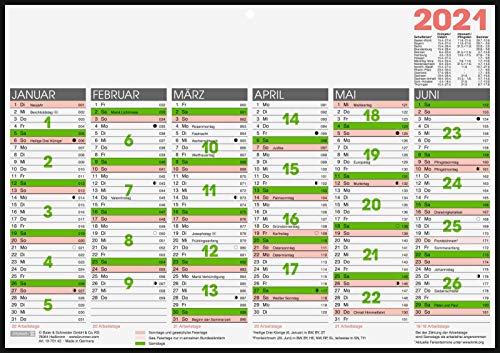 BRUNNEN 1070142001 skrivbordskalender, A4 modell 701 42, 1 sida = 6 månader, laminerad på kartong med svart marginal, kalender 2021