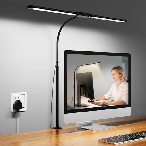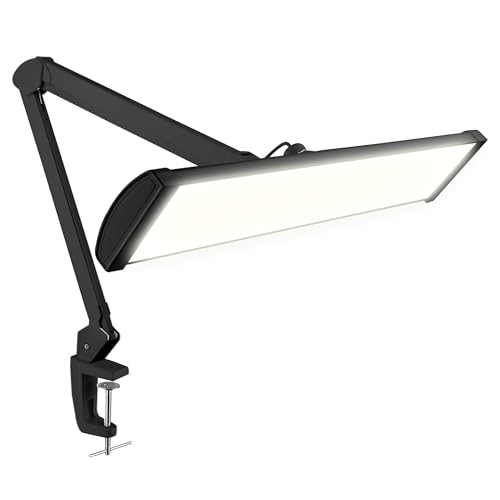 Neatfi LED-skrivbordslampa, 3 500 Lumen, 3 Ljuslägen, Dimbar, 45W, 66cm Brett Lampskärm, 540 SMD-LED, Ögonvänlig Arbetslampa för Läsning, Hantverk, Arbetsbänk och Kontor (CCT med Klämma, Svart)