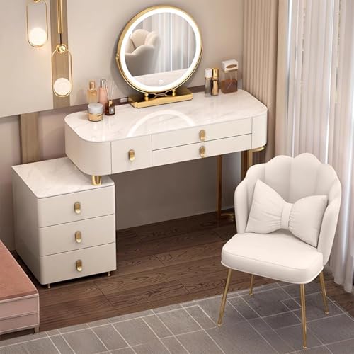 Sminkbord, modernt skrivbordsset med upplyst spegel smink med vadderad pall makeup för sminkrum sovrum (färg: Grå + svart-B, storlek: L: 120 cm) (vit+guld B)