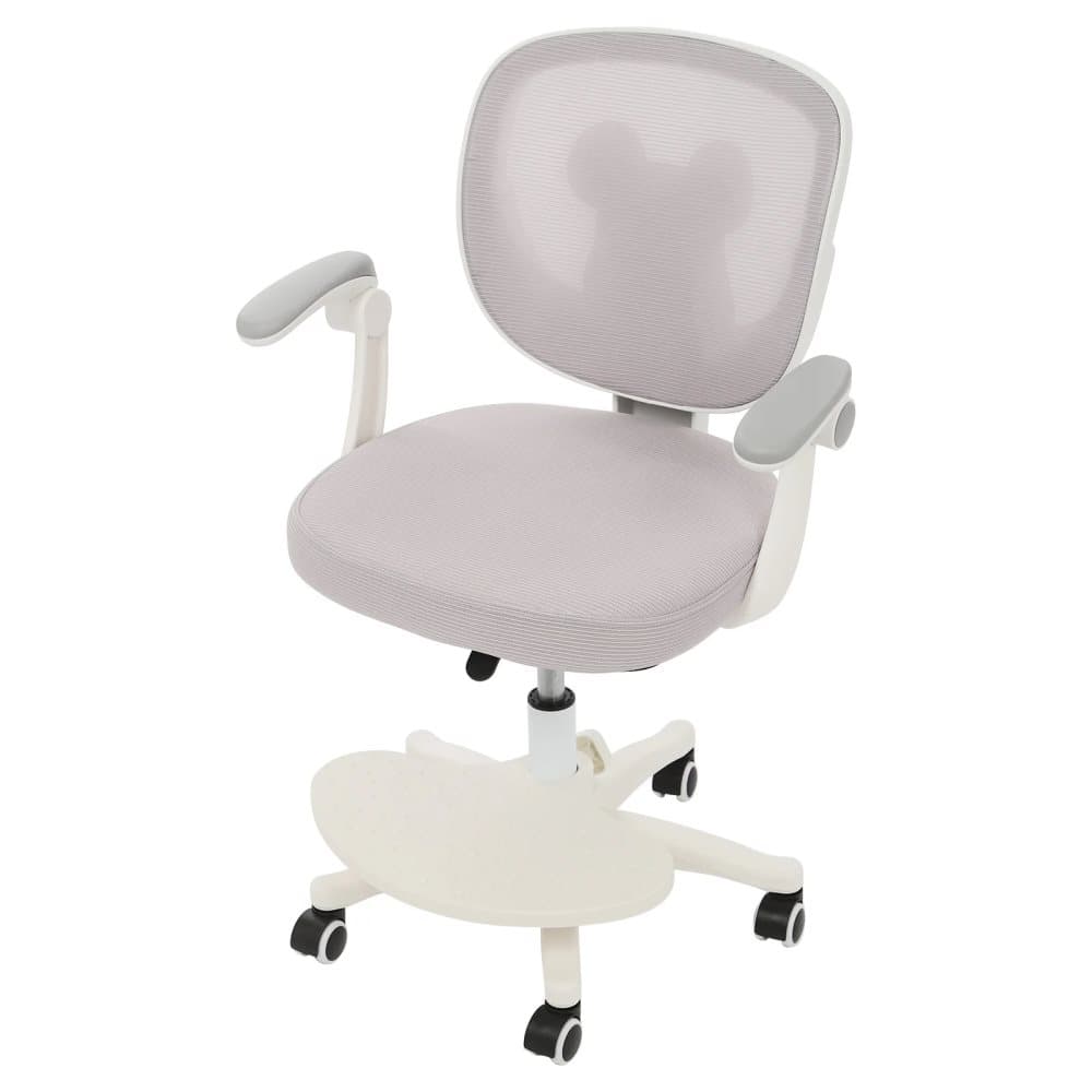 Skrivbordsstol för barn - Ergonomisk kontorsstol - Sitthöjd 36–46 cm justerbar - 360° Snurr - Universella Hjul - Armstöd - Max 100 kg - Ljusgrå