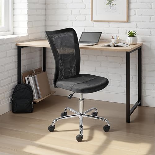 Inter Link – skrivbordsstol för barn – ergonomisk snurrstol – justerbar höjd – förkromad metallfot – ventilerande mesh-tygöverdrag – roterbar 360° – svart – bonnie